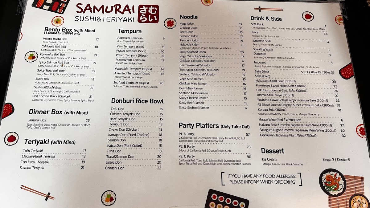 The attentive service from staff like Ash enhances the experience, ensuring that your meal is both delicious and enjoyable. Whether you're celebrating a special occasion or simply indulging in a satisfying lunch, Samurai Sushi & Teriyaki stands out as a must-visit destination.
